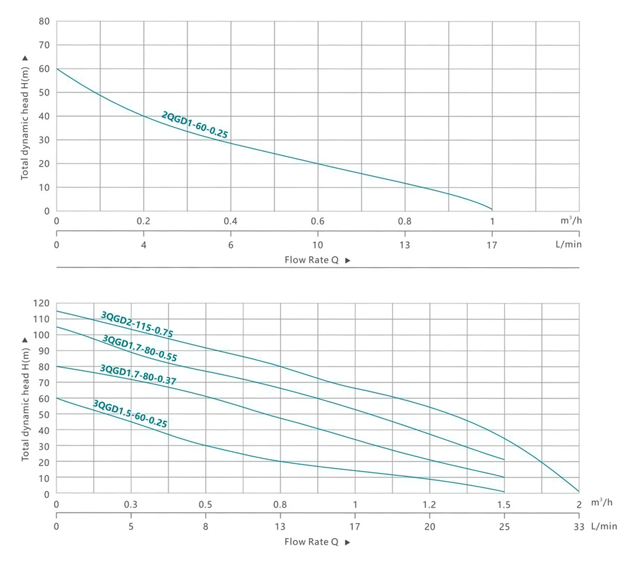 | 2QGD1-60-0.25 | 0.25 | 0.33 | H(m) | 60 | 40 | 29 | 20 | 12 | 1 | ||||||