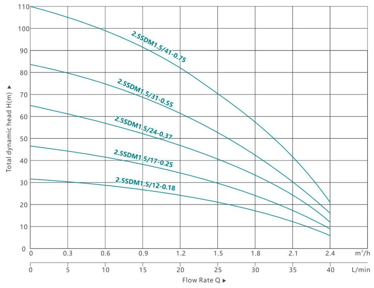 | 2.5SDM1.5 / 12-0.18 | 2,5SD1,5 / 12-0,18 | 0.18 | 0.25 | H(m) | 32 | 30 | 28 | 26 | 24 | 21 | 17 | 13 | 6 |