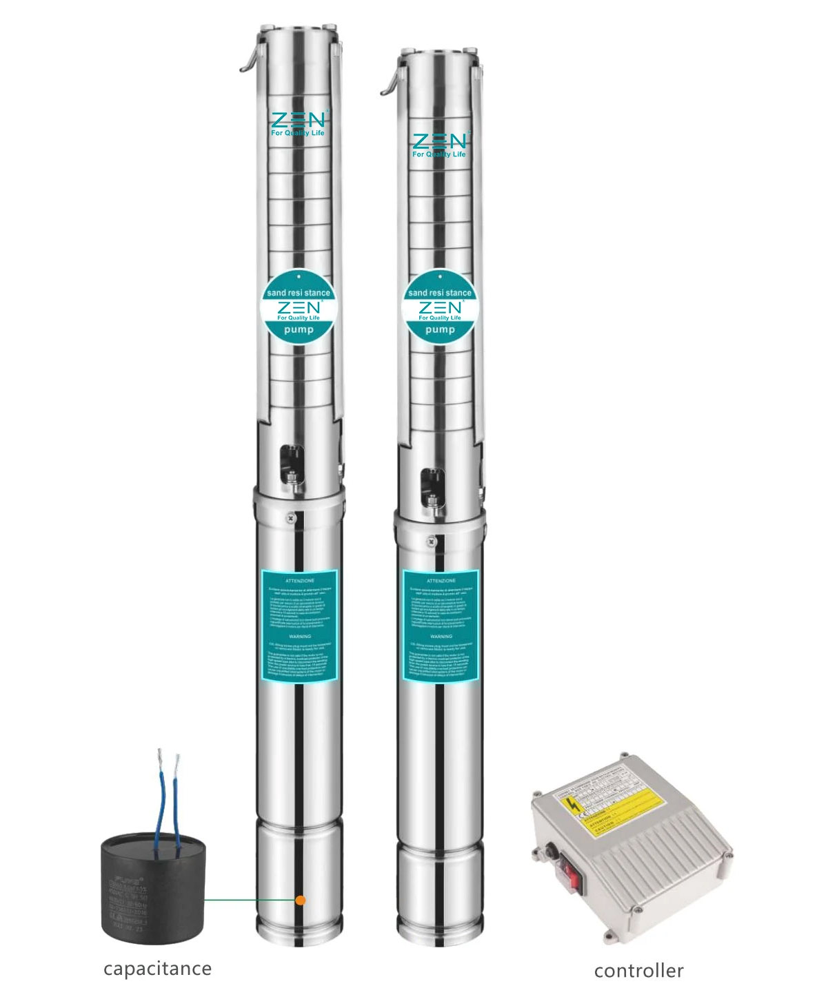 La marque ZEN est un important fabricant et fournisseur de pompe submersible 4SP pour puits profonds en Chine. Identifiant* 4chambres*4 : Diamètre du trou de forage : 100 mm (4")*SP : pompes submersibles série QJ* M : moteur monophasé (triphasé sans M)*2 : Capacité (m³/h)*06 : Scène* 0,37 : Puissance moteur (KW)