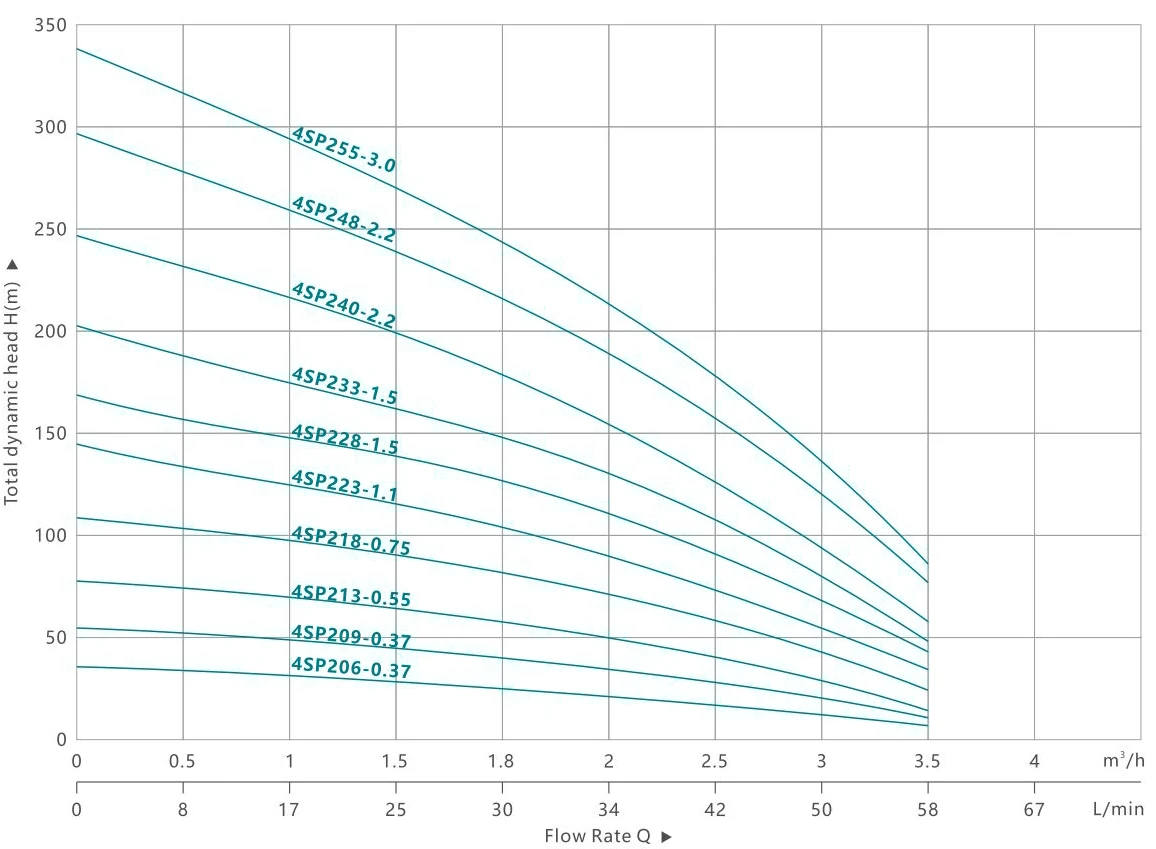 | 4SP255-3.0 | 3.0 | 4.0 | 336 | 312 | 292 | 275 | 253 | 220 | 182 | 116 | 80 | 8 | ||