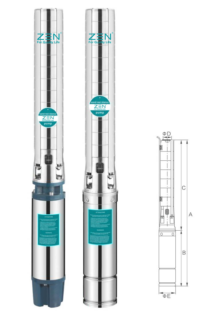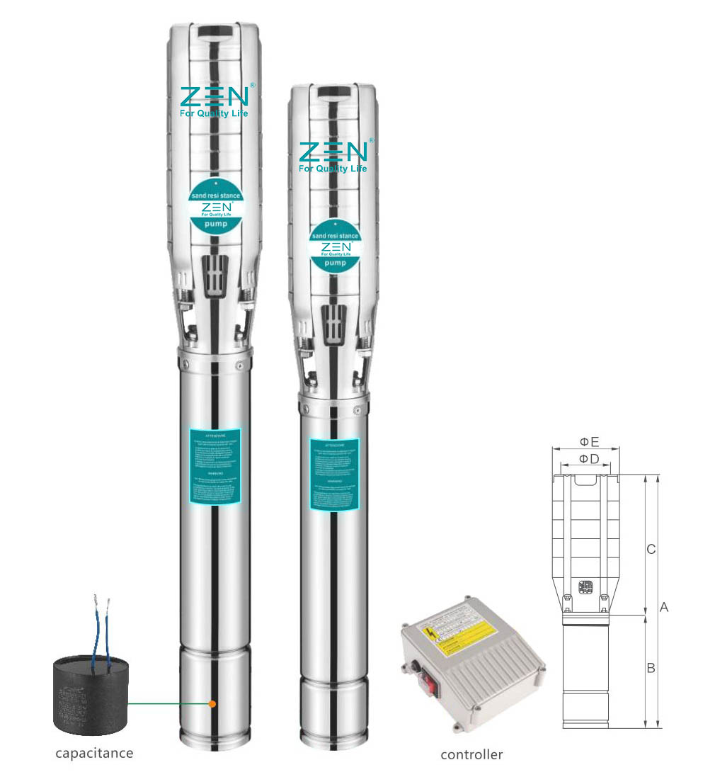 Si vous recherchez un approvisionnement en eau fiable pour votre maison, l'irrigation agricole ou les applications industrielles, la pompe submersible 6SP17 de marque Zen pour puits profonds est la solution parfaite. Identifiant*6SP*6 : Diamètre du trou de forage : 148 mm (6")*SP : acier inoxydable* 17 : Capacité (m³/h)*05 : Scène* 3.0 : Puissance du moteur (KW)