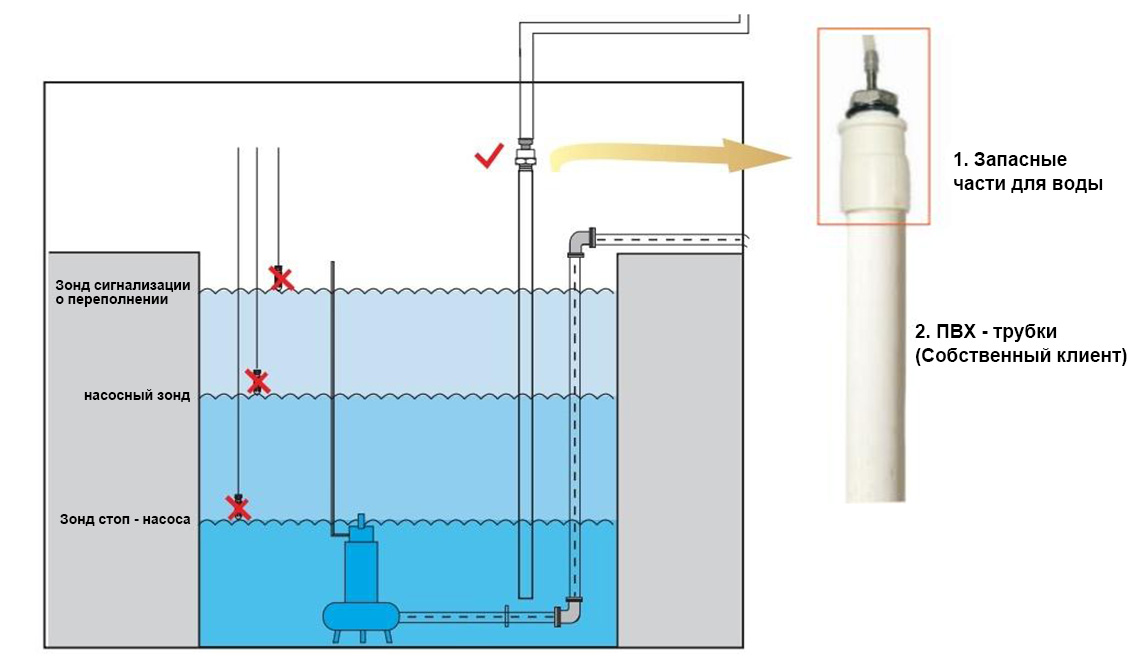 À l'aide d'un capteur de niveau de liquide, l'utilisateur de la pompe peut facilement observer la profondeur dans le puisard, une unité de centimètre.