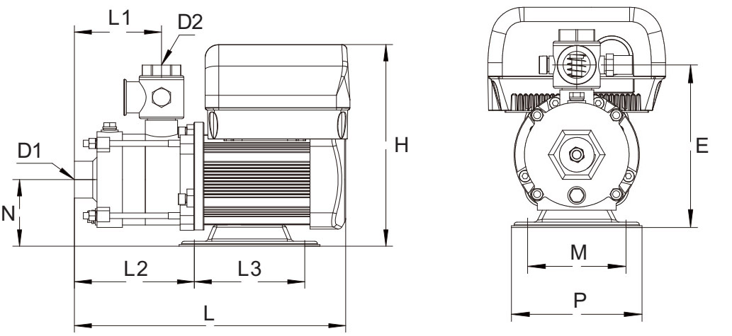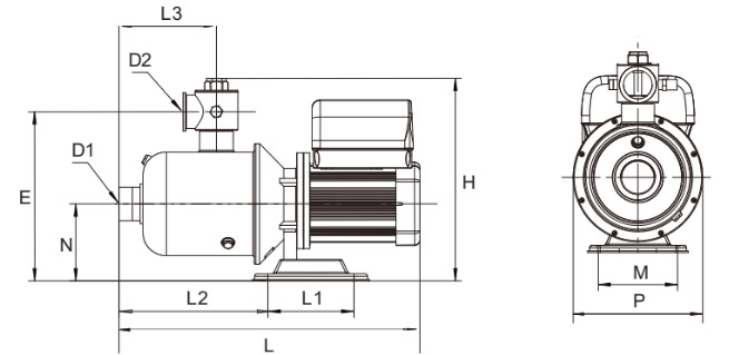 | Modèle | D1 | D2 | N | E | L1 | L2 | L3 | L | H | M | P | G.W(kg) |