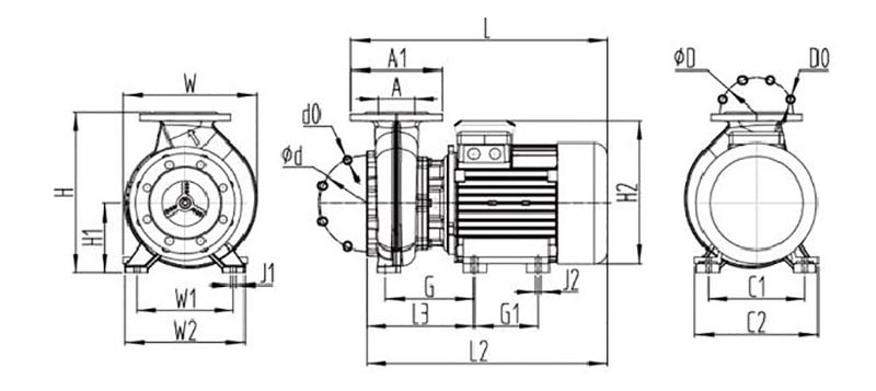 L (mm) | L2 (mm) | L3 (mm) | Hmm) | H1 (mm) | H2 (mm) | W (mm) | W1 (mm) | W2 (mm) | J1 (mm) | C1 (mm) | C2 (mm) | J2 (mm) | G (mm) | G1 (mm) | A1 (mm) | Un (mm) | d (mm) | D (mm) | D0 (mm) |
