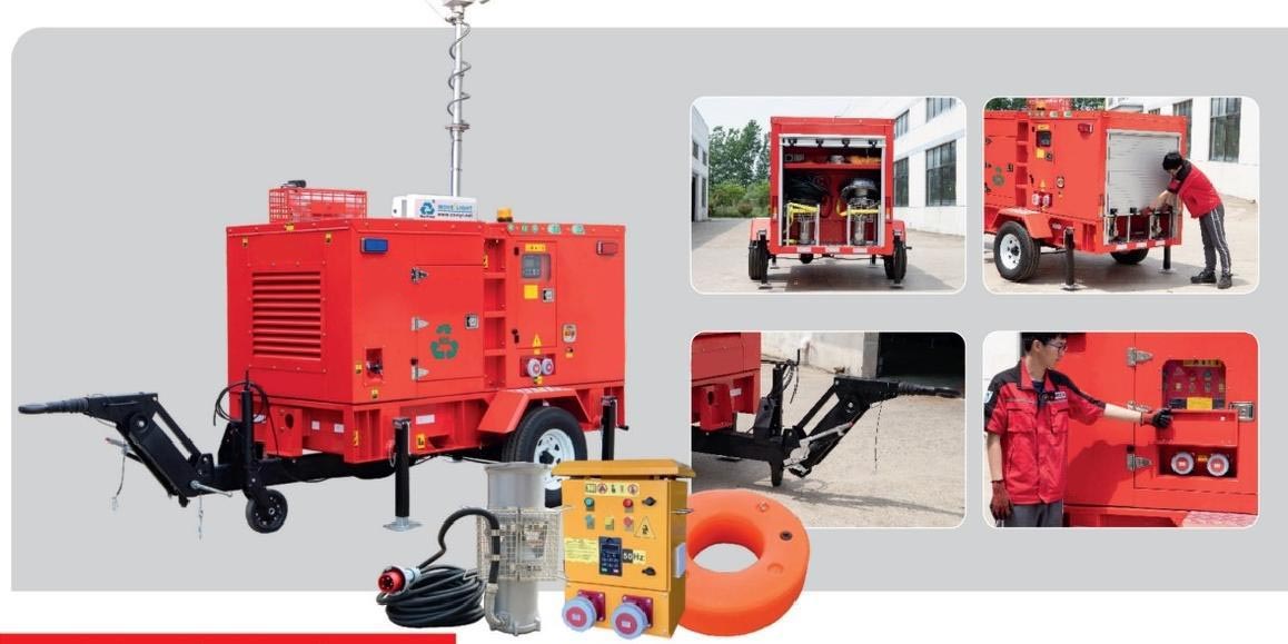 ■ remorque diesel - un groupe électrogène dont le boîtier est équipé d'une pompe pompe submersible pour réaliser les travaux d'électricité et de drainage sur place ;