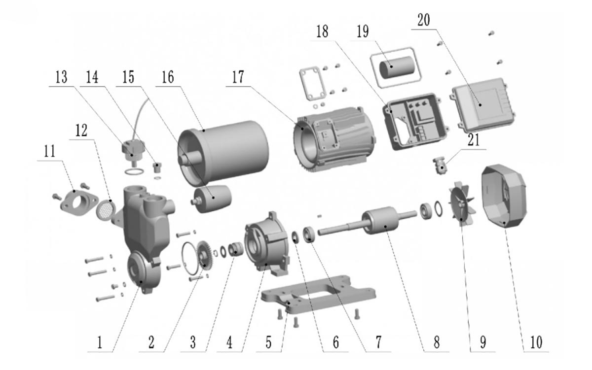 | 1 | Corps de pompe | 12 | Écran filtrant | |