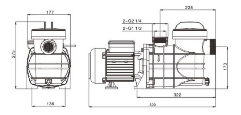 | SCP550 | 550 W/0,75 CV | 220-240 V/50 Hz | 230 | 12 | 2.5 | 8.4 | 530x240x285 | 799 |