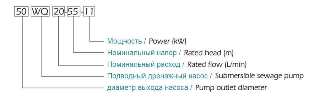 | 65WQ (D) 20-10-1,5 | 20 | 10 | 1.5 | 2 | 380/220 | 65 | 2900 | 60×25×28 |
