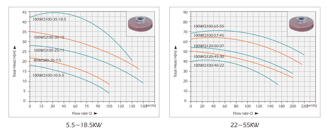 | 100WQ65-22-7.5 | 65 | 22 | 7.5 | 10 | 380 | 100 | 2900 | 84×34×44 |