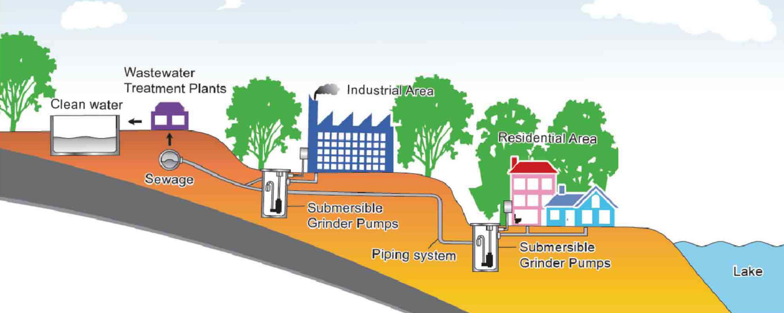 ■ Assainissement de maisons, hôtels, immeubles d'habitation. Par exemple, les eaux usées des toilettes, de la cuisine, de la salle de bain.