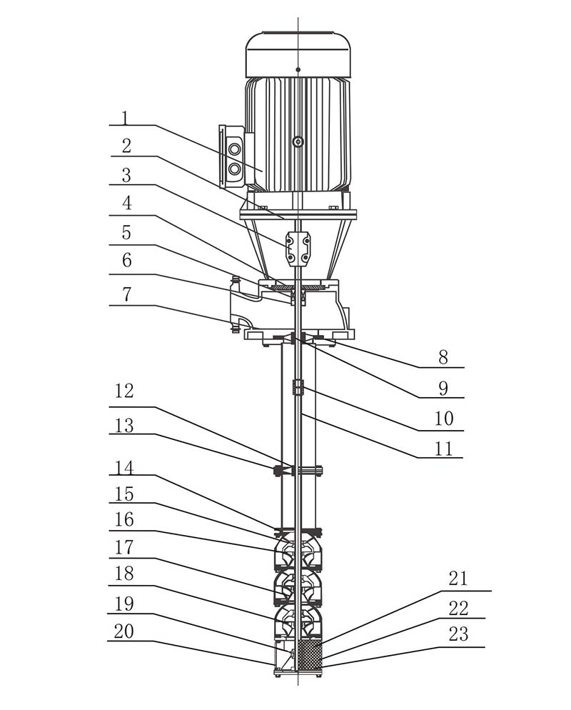 La pompe à incendie à turbine verticale à arbre long XBD de ZEN Machinery de haute qualité est composée de plusieurs roues centrifuges, de carters de guidage, de conduites d'eau, d'arbres de transmission, de moteurs de base de pompe et d'autres composants. La base de la pompe et le moteur sont situés au-dessus du bassin, et la puissance du moteur est transmise à l'arbre de la turbine via un arbre de transmission concentrique à la conduite d'eau, générant ainsi un débit et une pression.