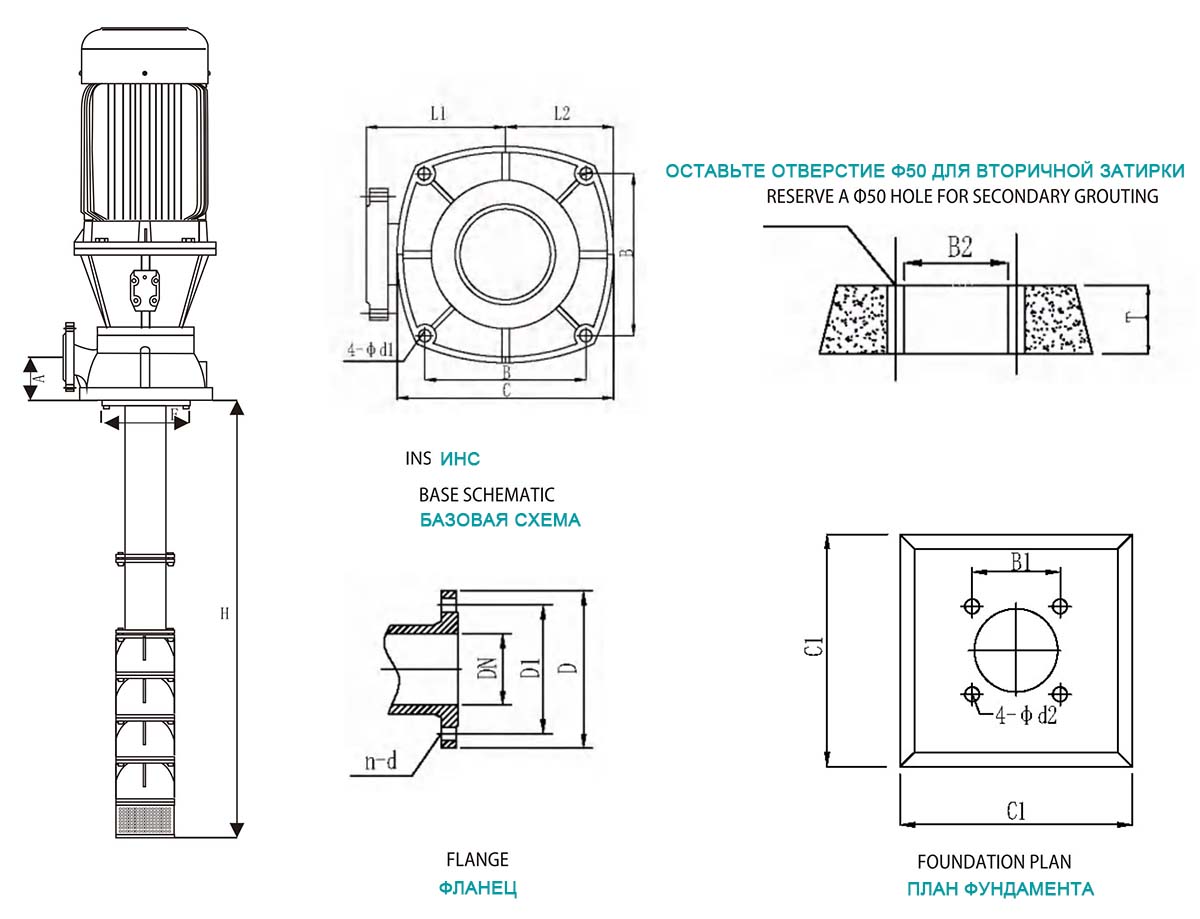 | 40-80L/S | L'eau est profonde | 180 | f305 | 310 | 223 | 310 | 450 | 4-Φ22 | 285 | 240 | 150 | 8-Φ22 | 700 | 310 | Φ310 | 300 | 4-Φ50 |