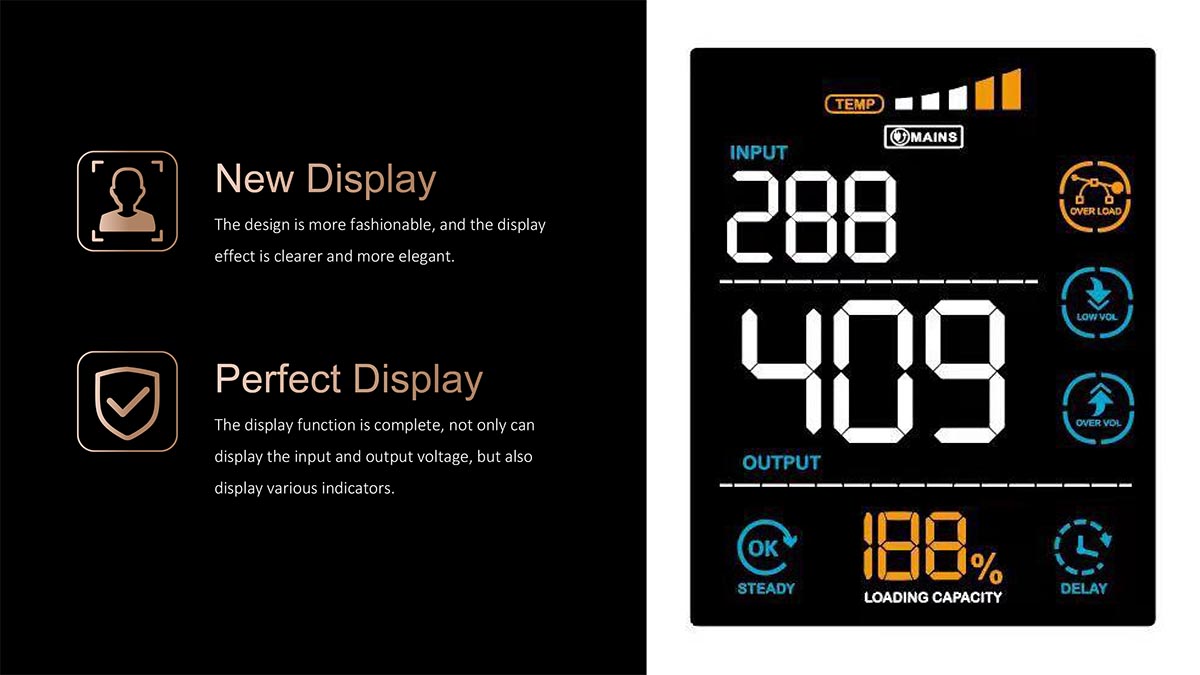 | Protection | Volume trop important (246 V ± 4 V), surcharge, température élevée, court-circuit | ||